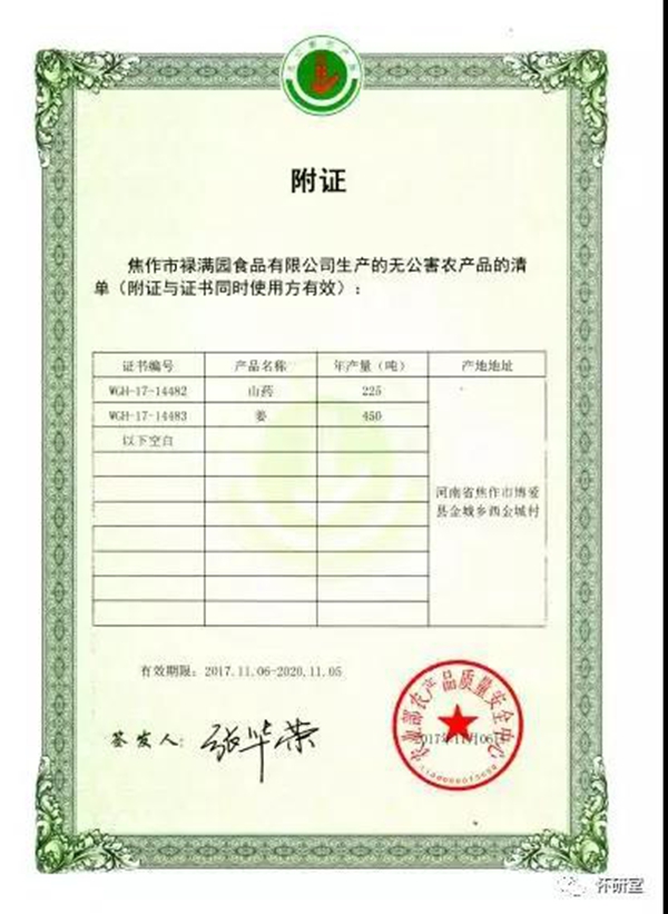 無公害認(rèn)證種植基地